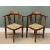 PAIR EDWARDIAN INLAID MAHOGANY CORNER CHAIRS, curved backs, shaped swept arms, twin fretwork splats, upholstered seat pads, tapering square supports, spade feet, X frame stretcher, 81cms (h), 63cms (w), 50cms seat (d)Provenance: private collection Conwy