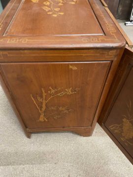 CHINESE CAMPHORWOOD CABINET CHEST OF DRAWERS, rounded corners, carved and inlaid detail, twin front doors, two short, two long interior drawers, stepped bracket feet, 84cms (h), 106cms (w), 56cms (d)Provenance: private collection Gwynedd