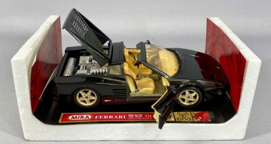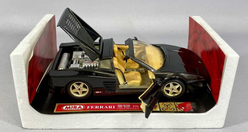 BURAGO/MIRA 1-18 SCALE DIECAST SPORTS CARS, 43516 Jaguar E Cabriolet (1961), 3521 Porsche 356B Coupe (1961), 3050 Porsche Carrera (1993), Ferrari 512TR Testarossa (1991), all boxedProvenance: private collection Conwy