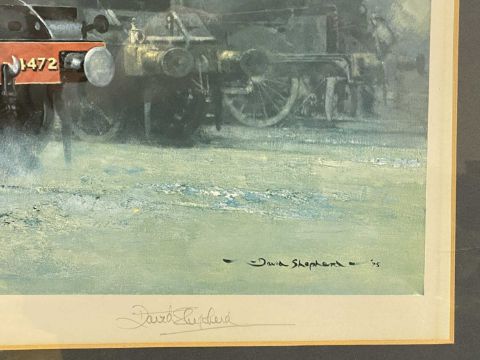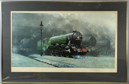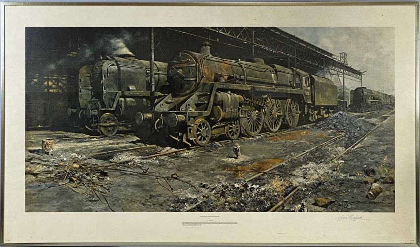 ‡ DAVID SHEPHERD (British 1931-2017), two colour prints published by Solomon and Whitehead - 'Nine Elms, The Last Hours', 65 x 113cms and 'Scotsman 34', 47.5 x 82.5cms, both signed in pencil by the artistProvenance: private collection DenbighshireComments: framed and glazed