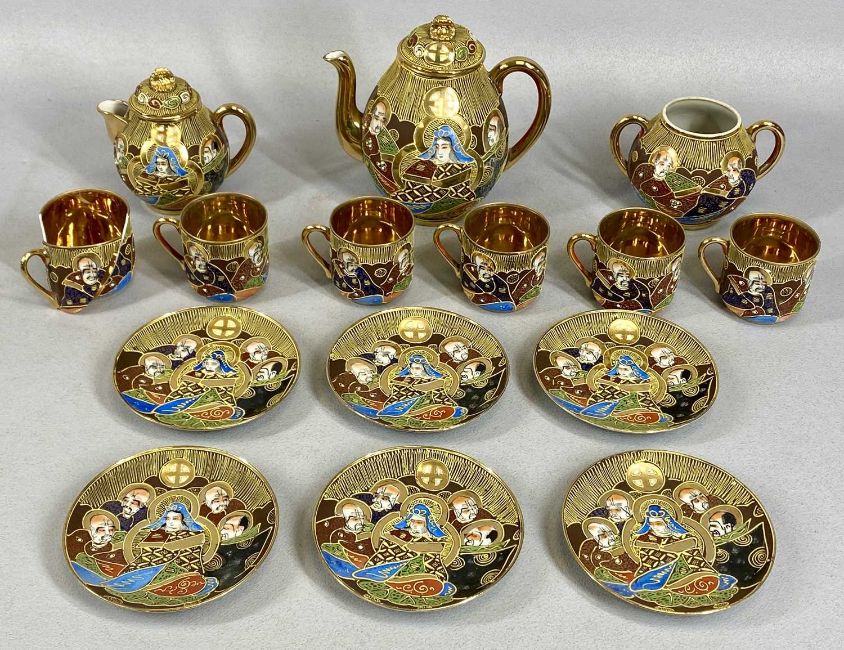 VARIOUS ORIENTAL CERAMICS including Noritake trio painted with panels of roses, 27cms (h), Noritake vases a pair of square baluster form, decorated with landscapes, 26cms (h) and a Satsuma tea service, 15 piecesProvenance: private collection Ynys Mon