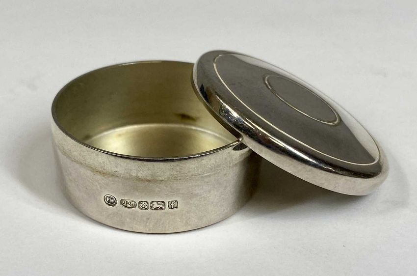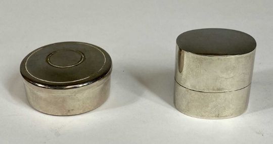 TWO MODERN SILVER BOXES comprising oval lidded ring box, 3cms (h) and a circular and lidded pill box, 3.75cms diameter, with original gift boxes, 1.6ozt gross completeProvenance: private collection Cheshire