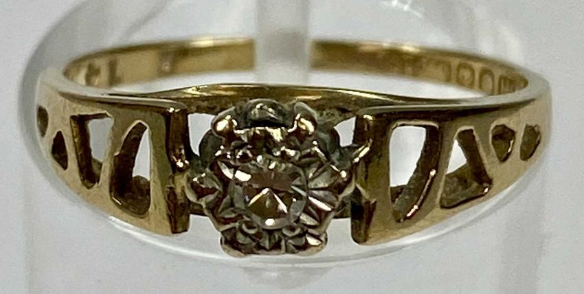 FIVE 9CT GOLD SOLITAIRE RINGS, four having diamond in illusion settings, mid G - H the smallest, mid K - L x 2 and O, paste set ring, size J, 7.8gms grossProvenance: private collection Denbighshire