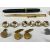 GENTLEMEN'S JEWELLERY & COLLECTABLES, to include a set of six possibly reverse painted intaglio buttons depicting the head of a Jack Russel dog, Victoria brass and enamel badge, silver and enamel tricolour badge, silver ARP badge, three pairs of gilt metal and other cufflinks with individual others, Fyne Poynt Mabie Todd & Co gold plated propelling pencil, Swan fountain pen with 14ct gold nib etc.Provenance: private collection Wrexham
