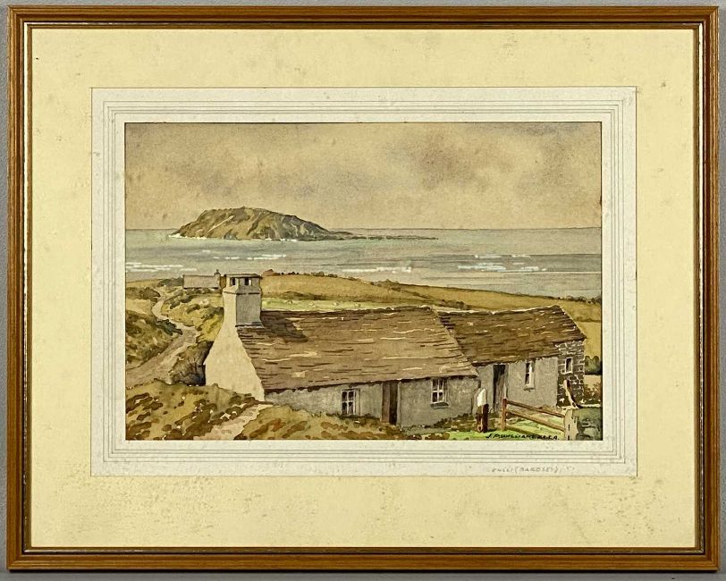 ‡ J. P. WILLIAMS F.R.S.A 20th century watercolour - entitled "Enlli" (Bardsey), signed lower right and entitled on mount, artist's label verso, 21 x 32cms Provenance: private collection GwyneddComments: framed and glazed