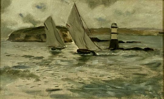 WILLIAM JAMES CORAH ARCA watercolour - Anglo-German exhibition 1913 label verso, title "Sunny Afternoon Cemaes Bay, Anglesey", 64.5 x 100cms, L. B. oil on canvas, sailing yachts, possibly near Puffin Island, 24 x 39cms, framed black and white print, unknown cityscape, 33 x 75cmsProvenance: private collection ConwyComments: large watercolour with gilt mount, two others framed and glazed