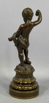BRONZED FIGURINE OF A CHILD HOLDING GRAPES, 20th century, unsigned, gilt highlighted stepped circular base, 31.5cms (h)Provenance: private collection Conwy