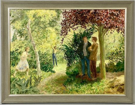 ‡ FELICITY CHARLTON oil on board - figures in garden, 44.5 x 60cmsProvenance: private collection Denbighshire, purchased from Rogers Jones Cardiff 7/6/2018 for £440Comments: framed