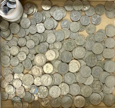 LARGE COLLECTION OF BRITISH HALF SILVER & NICKEL COINAGE, 24.6ozt of half silver content, British half crowns, florins, shilling and six pence pieces, 113 individual coins, very large quantity of post-1947 nickel six pence's, 65ozt approx. and other British nickel coinage, 70ozt approx.Provenance: private collection Conwy