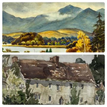 H. HUGHES RICHARDSON watercolour - mountainous lake landscape, entitled verso "Autumn in Snowdonia, North Wales", on Warwick Galleries Birmingham label, signed lower right, 29.5 x 42.5cms with a 19th century watercolour Aylesford Priory Surrey, 27 x 37cms Provenance: private collection DenbighshireComments: framed and glazed