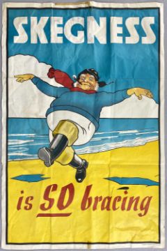 COLOURFUL PAPER POSTER featuring the Jolly Fisherman, 'Skegness is SO Bracing', published by E. T. W. Dennis, Scarborough 1970s, 75.5 x 50.5cms Provenance: private collection Gwynedd Comments: unframed