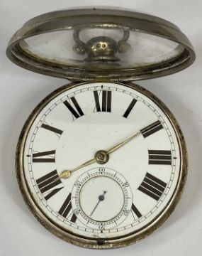 RICHARD B THOMAS, PORTHMADOG, VICTORIAN SILVER PAIR CASED VERGE POCKET WATCH, white enamel dial with Roman numerals, the movement signed and numbered '17283', the case 1876 maker John Rotherham, 5.5cms diam.