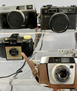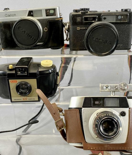 COLLECTION OF CAMERAS AND ACCESSORIES including a Coronet "Vogue" bakelite cased bellows camera, a Canon Canonet, Yashica JP, Elmo 912 dual type film editor and other itemsProvenance: private collection Denbighshire
