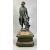 SPELTER FIGURES comprising Napoleon against pillar on associated rustic wooden base, 58cms H, and a figure of a continental soldier, on circular wooden plinth, 43cms H