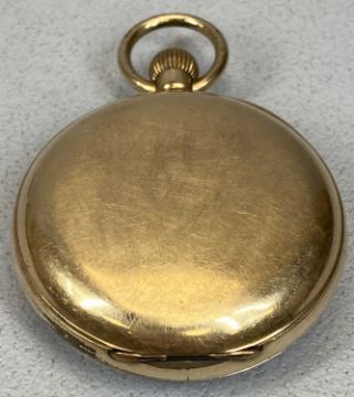 GOLD PLATED OPEN FACED CENTRE SECONDS CHRONOGRAPH POCKET WATCH, early 20th Century, keyless, white enamel dial, black Roman numerals, outer coloured dial with Arabic numeral detailing km per hour, subsidiary dial from 0 - 14, including coloured surrounds to 0 - 5, marked 'Anti-Magnetique Cadre Brevete S. G. D. G.', case back numbered 3406050, approx. 5.5cms diam.