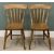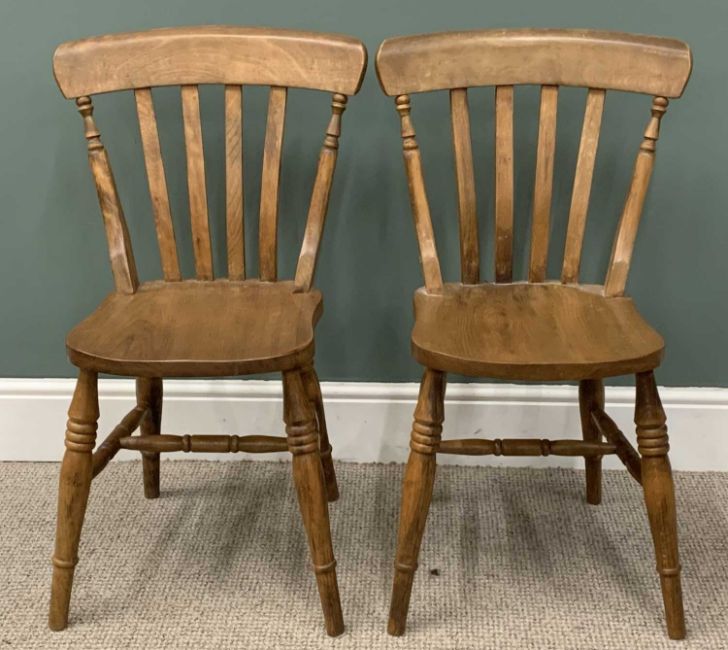 VINTAGE OAK DRAW LEAF DINING TABLE & FIVE (4+1) FARMHOUSE DINING CHAIRS, stripped back table top, rounded corners, painted base, substantial urn shape supports, trestle pedestal base, 74.5 (h) x 91.5 (l closed) x 152.5 (l fully open) x 91cms (w), curved slatted backs, solid seats, turned supports, H stretchers, 100 (h) x 56 (w) x 39cms (seat d) the carver, 84 (h) x 36.5 (w) x 36cms (seat d) the othersProvenance: private collection Conwy