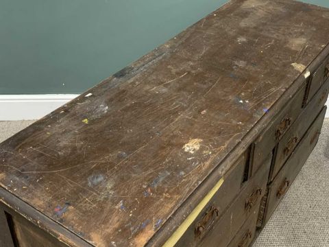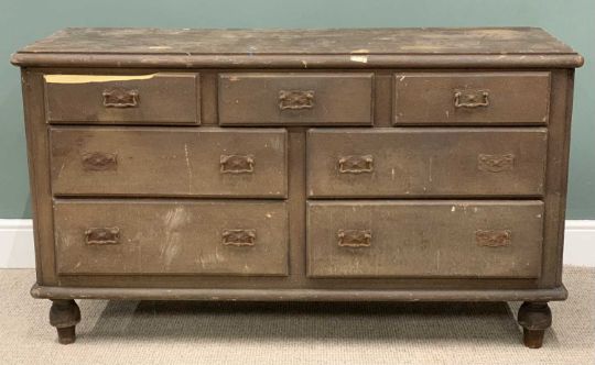 VINTAGE SCUMBLE PAINTED CHEST of three short, four long drawers, Art Nouveau type metal backplates and swing handles, turned bun feet, 85 (h) x 147 (w) x 48cms (d)Provenance: private collection Conwy