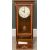 REPRODUCTION WALL CLOCK, WALL DISPLAY CABINET, ROCKING FOOTSTOOL, London Clock Company, circular white dial, Roman numerals, quartz pendulum driven movement, cross banded walnut and mahogany case, glazed door, lower drawer, star burst? detail, 67 (h) x 32 (w) x 13cms (d), curved end wall cabinet, central glaze door, interior shelves, outer open shelves, 58 (h) x 51 (w) x 21cms (d), upholstered seat pad, slatted end, X frame, 34 (h) x 58 (w) x 31cms (d)Provenance: private collection Conwy