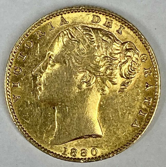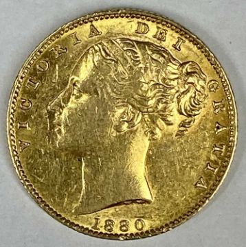 QUEEN VICTORIA GOLD SOVEREIGN 1880, shield back, inverted A for V, S below shield 8gmsProvenance: private collection Ynys Mon