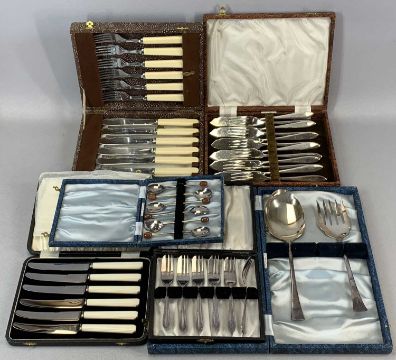 MIXED CUTLERY large quantity of cased (7) and loose, other items including tureen, condiments set and small silver items Provenance: deceased estate Flintshire