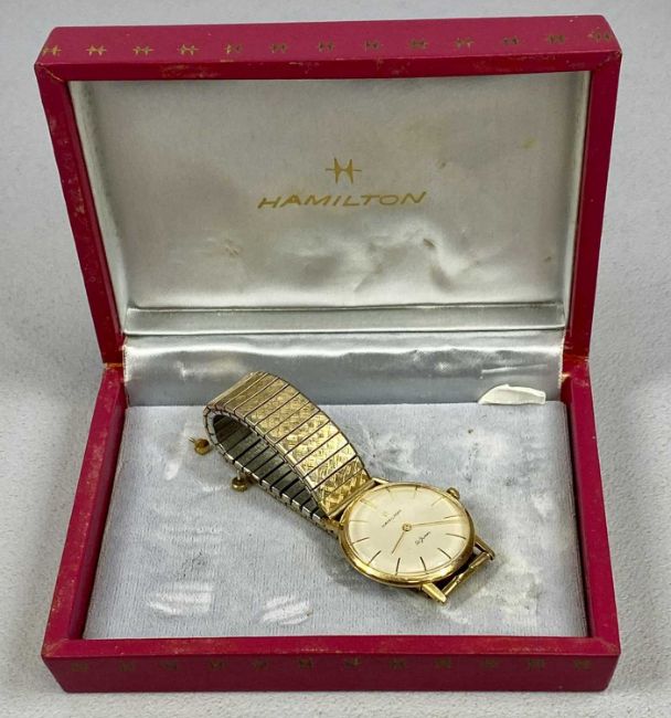 GROUP OF THREE VINTAGE GENTS WRISTWATCHES, Smiths Astral gold plated case, champagne dial on flexible bracelet, Montine gold plated case, champagne dial with baton hour markets on flexible bracelet and Hamilton gold plated case, champagne dial with baton hour markers on flexible braceletProvenance: private collection Flintshire