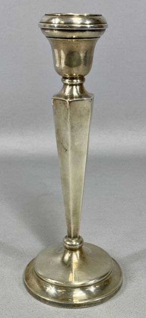 GEORGE V SILVER CANDLESTICK, tapering hexagonal column, circular stepped loaded base, Birmingham 1924, G. H. Inshaw & Co, 21.5cms (h)Provenance: private collection Conwy