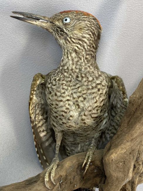 TAXIDERMY GREEN WOODPECKER, 20th century, modelled perched on a branch, 40cms (h) overallProvenance: private collection Denbighshire