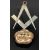 LARGE MASONIC BROOCH & A JAPANESE SATSUMA BELT BUCKLE, the brooch in unmarked, untested white metal, Cairngorm type amber colour stone, 9cms (l), 7.5cms (across), ceramic buckle, lobed form, cross within a circle stamped white metal back, front depicting ladies within a gilt and floral surround, 5 x 5cmsProvenance: private collection Radnorshire