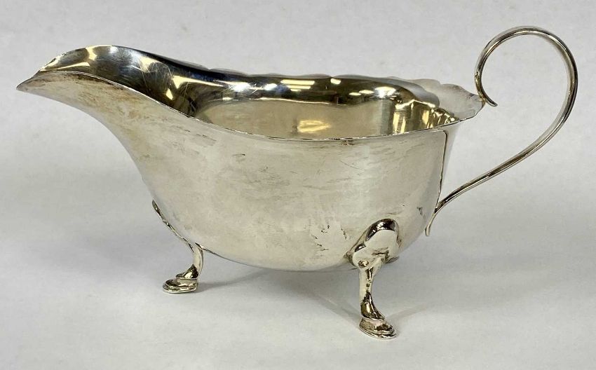 ELIZABETH II SILVER SAUCE BOAT, with wavy rim, loop handle and on hoof feet, Sheffield 1962, Mappin & Webb, 3.5ozProvenance: private collection Conwy