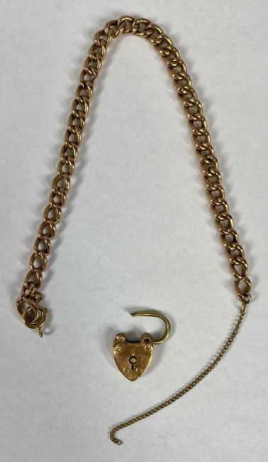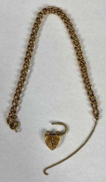 9CT ROSE GOLD CURB LINK BRACELET, with heart shaped padlock clasp, with safety chain, 18.5cms (l), 7gmsProvenance: private collection Ynys Mon