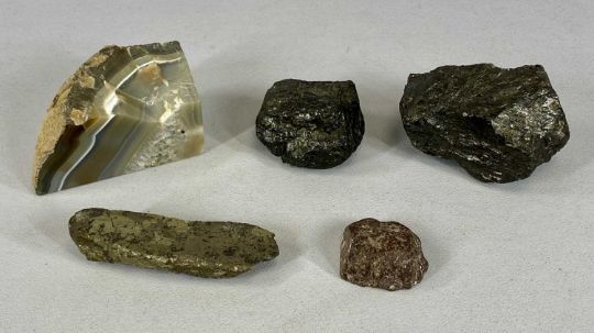 MIXED ANTIQUES, two antique parasols, Georgian style wall mirror and a quantity of mineral samples