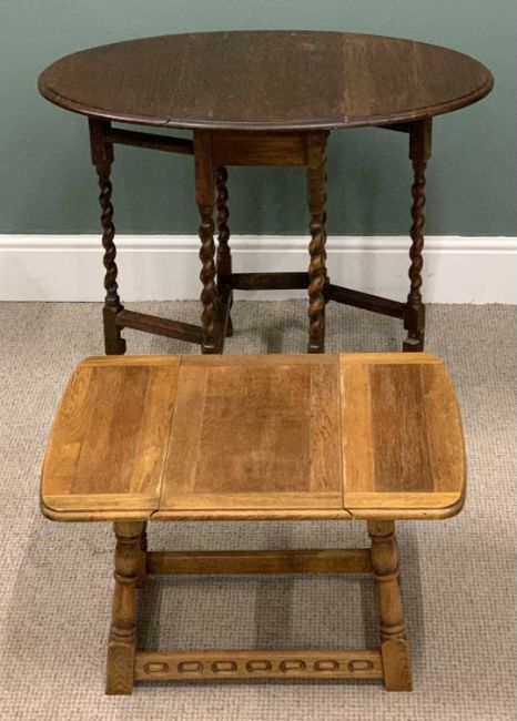 THREE ITEMS OF VINTAGE / ANTIQUE FURNITURE comprising mahogany Pembroke table, 69 (h) x 46 (w - open)/88 (w - closed) x 83cms (d) small gateleg table, 71 (h) x 37 (w - open)/92 (w - closed) x 60cms (d) small sofa table, 41 (h) x 32 (w - open)/67 (w - closed) x 51cms (d)Provenance: private collection Denbighshire