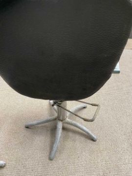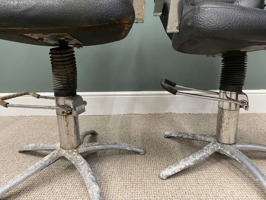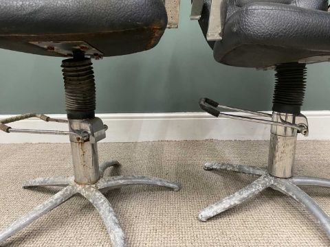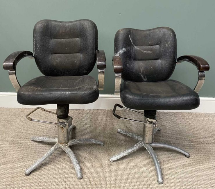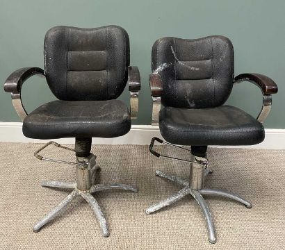 TWO VINTAGE ADJUSTABLE BARBERS' CHAIRS 99 (h) x 60 (w) x 44cms (d)Provenance: private collection Conwy