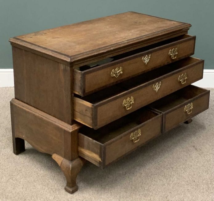 19TH CENTURY OAK CHEST being a section removed with two long drawers over two short drawers, brass drop handles and crossbanding, 72 (h) x 123 (w) x 59cms (d)Provenance: private collection Conwy