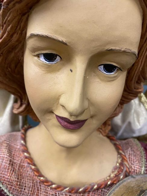 CLOTHED PLASTER & MIXED MEDIA ANGELIC MUSICIAN FIGURE 165cms (h)Provenance: private collection Conwy