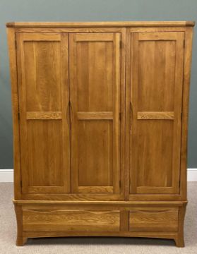 ALMOST NEW OAK TRIPLE WARDROBE having two base drawers, 185 (h) x 144 (w) x 59cms (d)Provenance: deceased estate Conwy