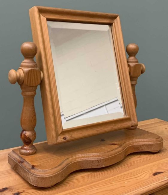 MODERN PINE FURNITURE comprising chest, 91 (h) x 89 (w) x 38cms (d), bedside chest, 60 (h) x 45 (w) x 44cms (d), bookcase with cupboard base 99 (h) x 58 (w) x 40cms (d) and small toilet mirrorProvenance: deceased estate Denbighshire