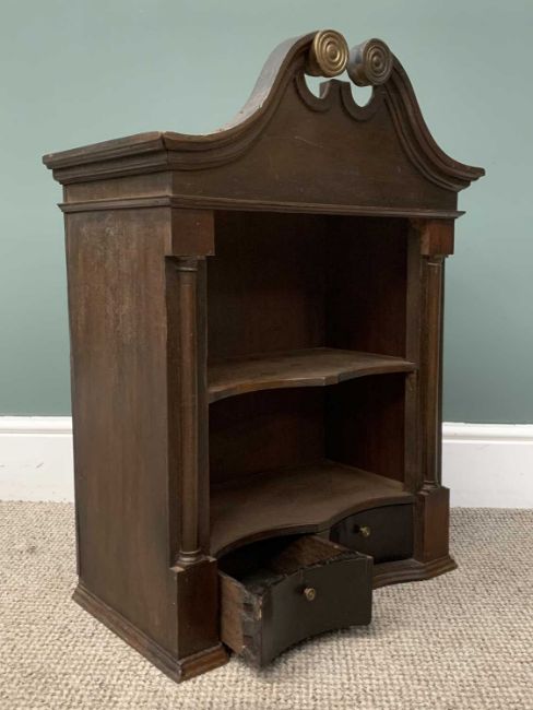 FURNITURE ASSORTMENT to include converted clock hood bookcase with base drawers, 75 (h) x 55 (w) x 30cms (d), two dressing stools and a shield shape mirror, 62 (h) x 46 (w) x 22cms (d)Provenance: private collection Conwy