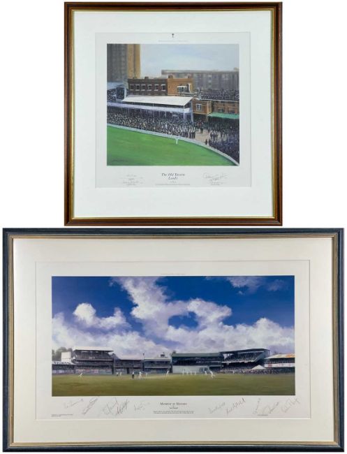 ‡ JACK RUSSELL limited edition (144/500) print - 'The Old Tavern Lord's', signed by Jack Russell, Dennis Compton, Sir John Mills and Sir Harry Secombe, 52 x 52cms, together with another Jack Russell limited edition (244/350) print - 'Moment in History', many signatures, 50 x 86cms (2)Provenance: private collection SwanseaComments: framed and glazed, ready to hang