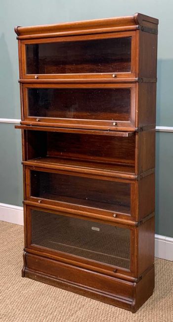 WERNICKE SYSTEM "ELASTIC" MAHOGANY AND OAK LIBRARY BOOKCASE, c. 1900, five sections, glazed up-and-over doors, 166 (h) x 86.5 (w) x 26.5cms (d)Provenance: private collection South WalesComments: normal wear, dints, scratches, bottom tier missing one handle, other replaced