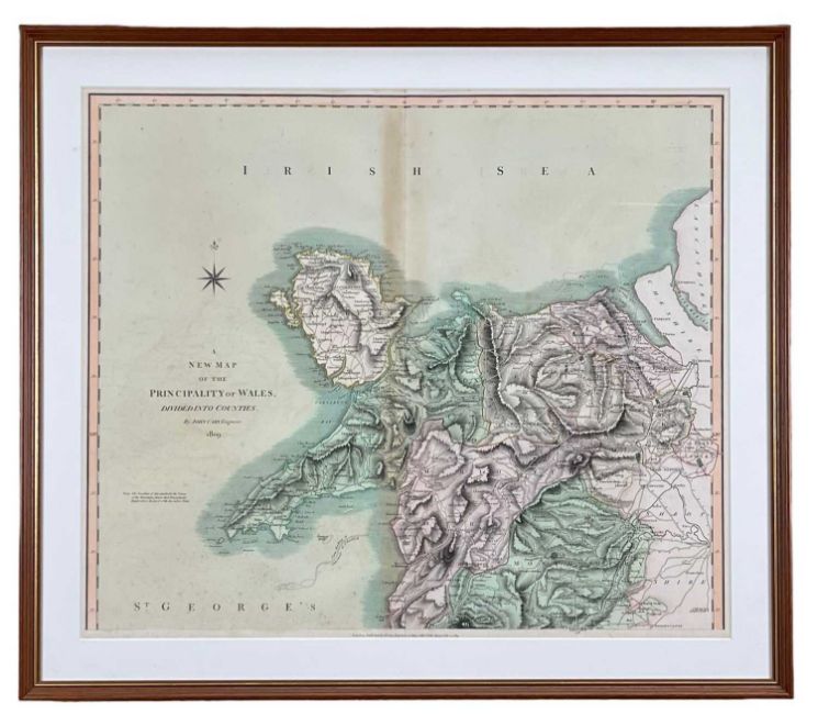 JOHN CARY / C & H GREENWOOD / GREENWOOD coloured antiquarian maps - entitled (1) 'Principalities of Wales', dated 1809, by John Cary, 48 x 57cms (2) Greenwood & Co coloured antiquarian map of Hereford, 65 x 78cms (3) C & H Greenwood 'Monmouth', 64 x 79cmsProvenance: private collection PowysComments: John Cary map is framed and glazed, the other two Monmouth and Hereford, unframed