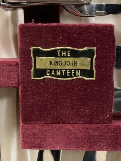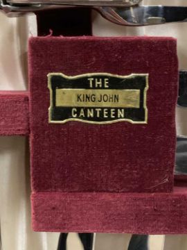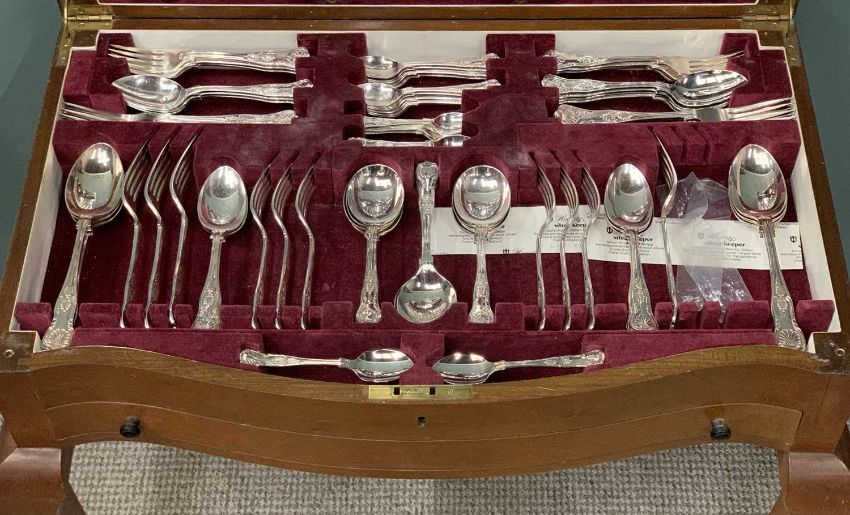 VINERS CANTEEN TABLE with King's pattern stainless near complete contents, 77 (h) x 72 (w) x 44 (d) cmsProvenance: Private collection Denbighshire