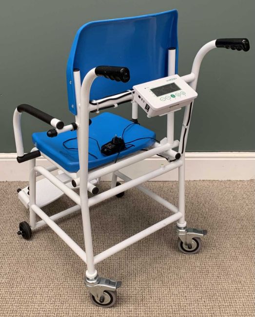 ELECTRIC WHEELCHAIR with charger, brand "Salsa", (seen working in saleroom) and a MARSDEN 300kg ELECTRIC WEIGH CHAIR (sit-down scales), E/TProvenance: Private collection Conwy