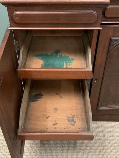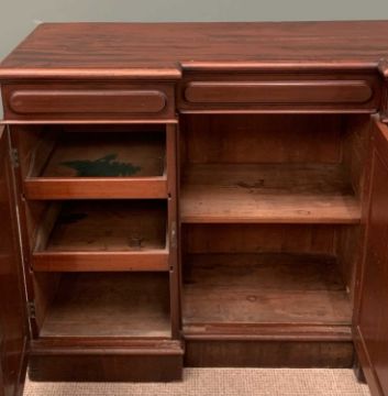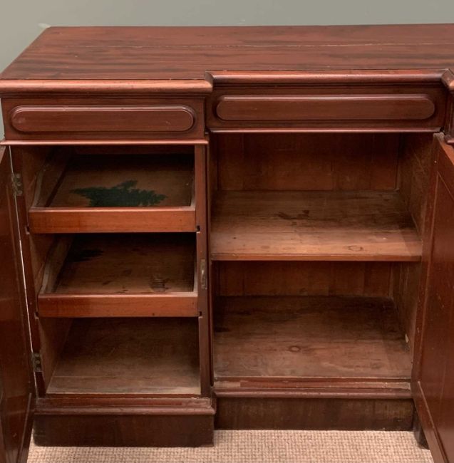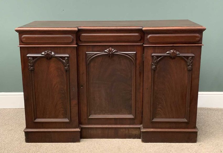 VICTORIAN MAHOGANY SIDEBOARD with inverted breakfront, three opening cupboard doors with fitted interiors, 92 (h) x 137 (w) x 49 (d) cmsProvenance: Private collection Conwy