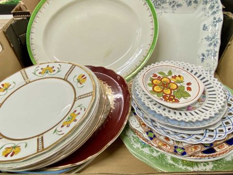 MIXED GROUP OF CERAMICS, 19th century and later, including various part tea and dinner services, two Aynsley Cottage Garden table lamps, pottery stein, character jugs, miniature ornaments and other items (contained in four boxes)Provenance: private collection Denbighshire