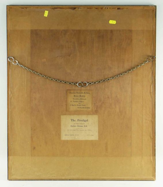 HERBERT DICKSEE R.E. (1862 - 1942) from an edition of 325, original artist proof etching on vellum - The Prodigal, a seated terrier on stone steps, signed with initials and dated 1926 in the print, signed in pencil, various blind stamps, 48 x 39cmsProvenance: private collection ConwyComments: framed and glazed