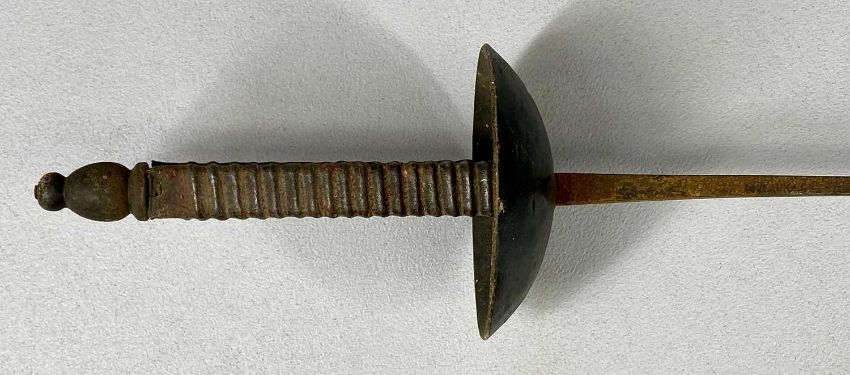 GROUP OF FOUR SWORDS, three fencing swords and a bamboo sword stick, 92cms (l)Provenance: private collection Gwynedd
