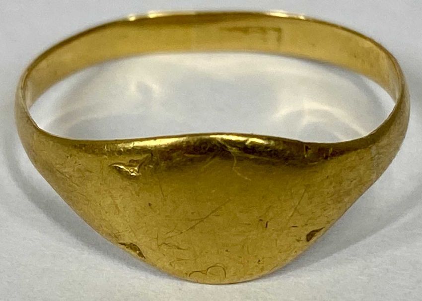 TWO GOLD SIGNET RINGS 22ct, size Q, 2.2gms, 9ct, size O, 2.8gmsProvenance: private collection Gwynedd