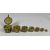 GROUP OF MIXED COLLECTABLES, Obertino French made cast brass cow bell, 22cms (diam.), set of brass nesting weights, 4.5cms (h), ornate gilded brass ink stand with ceramic liner, 13cms (h) and a mahogany cased set of metric chemist's weightsProvenance: private collection Gwynedd