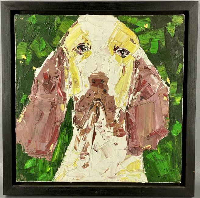 UNKNOWN SINGAPORE ARTIST acrylic oils a pair - portraits of dogs, unsigned, 40cms²Provenance: private collection DenbighshireComments: framed